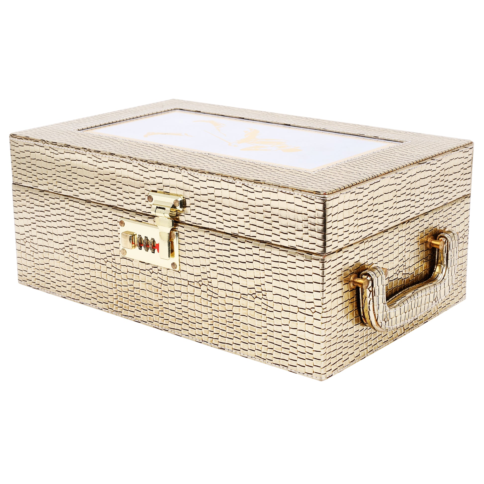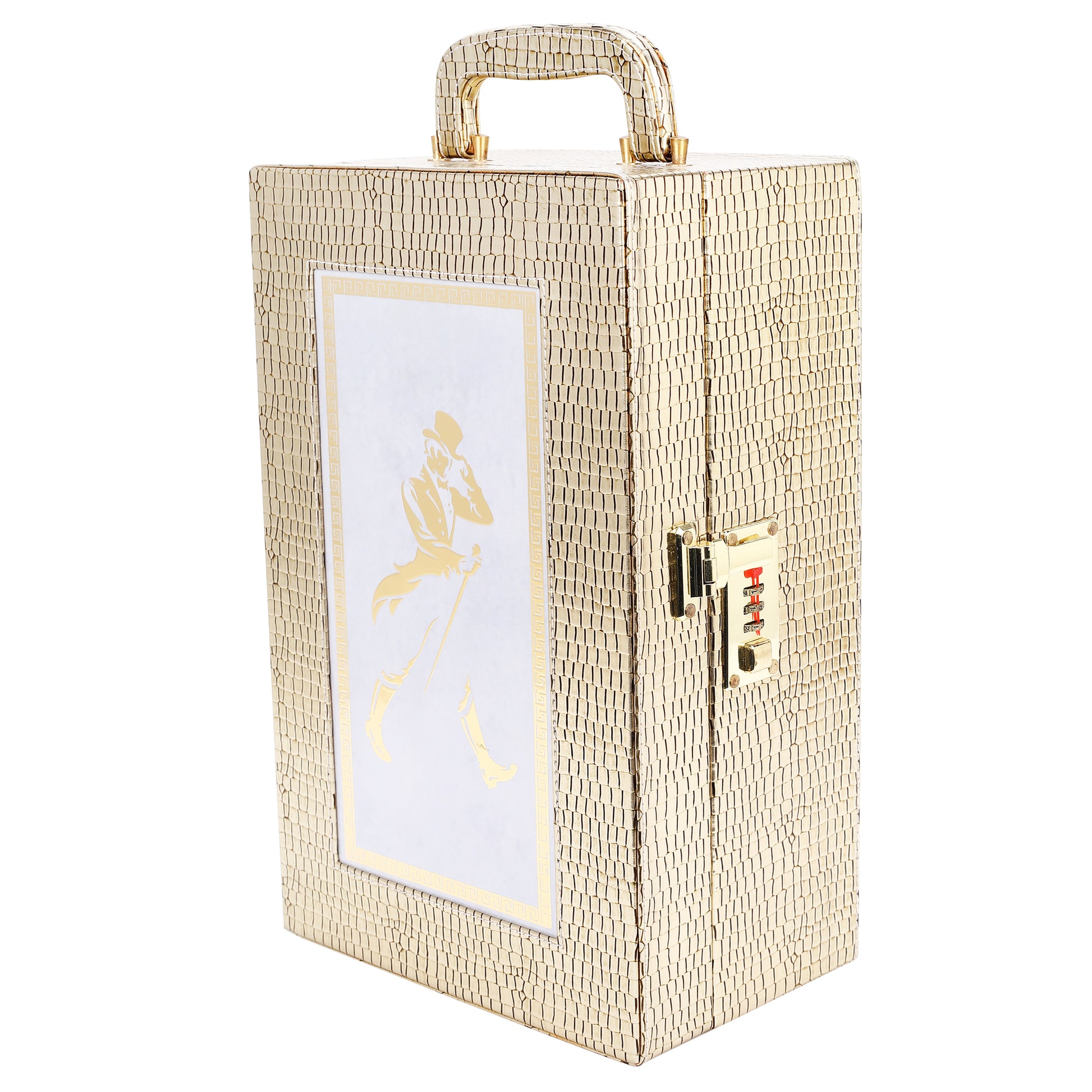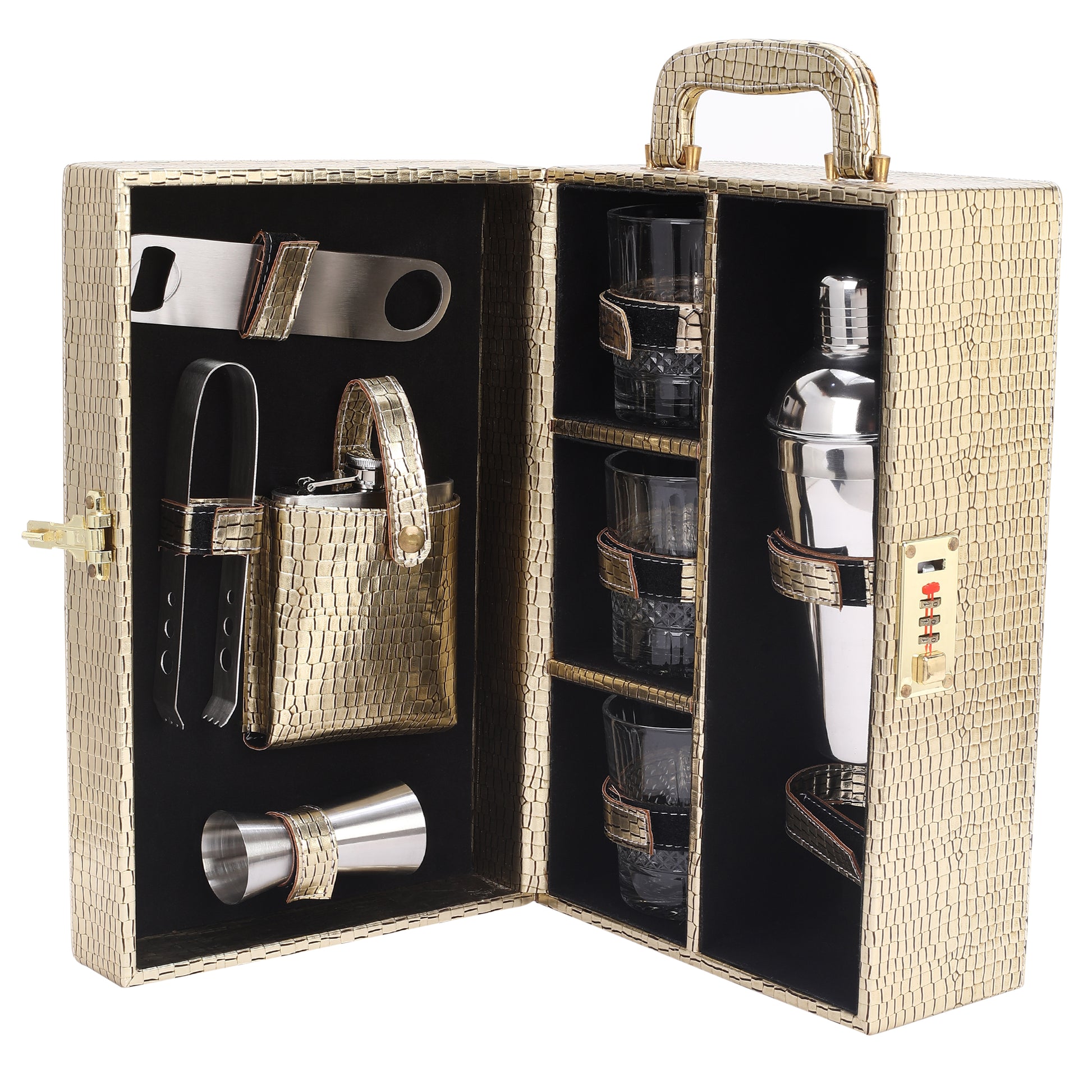 - Material: Wooden, Golden & Black Color Bar Accessories Portable Leatherette Wood Briefcase Set.