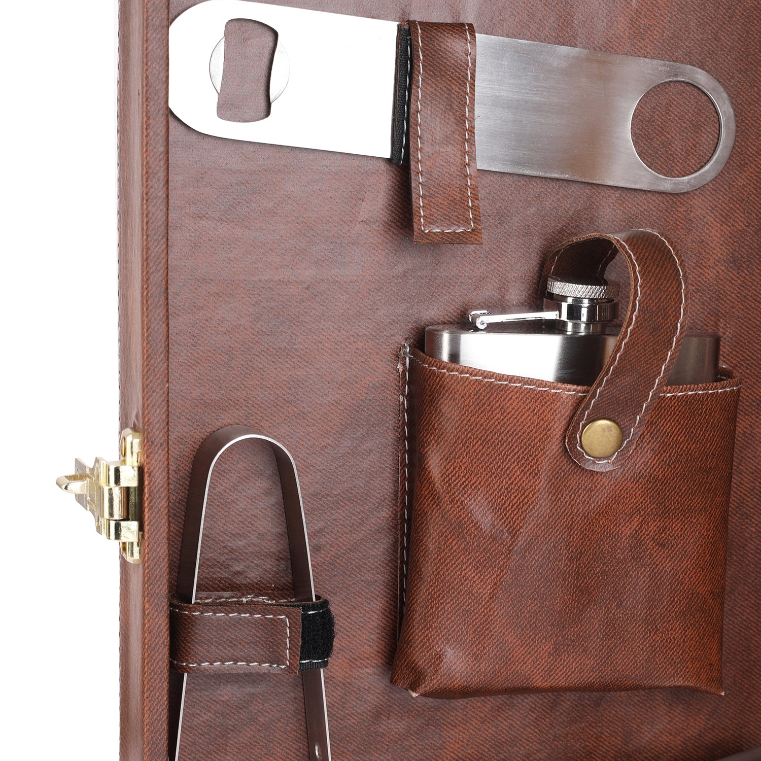 - ✔ 1 Cocktail Shaker, 1 Ice Tong, 1 Peg Measurer, 3 Whisky Glasses, 1 Hip Flask, 1 Opener.