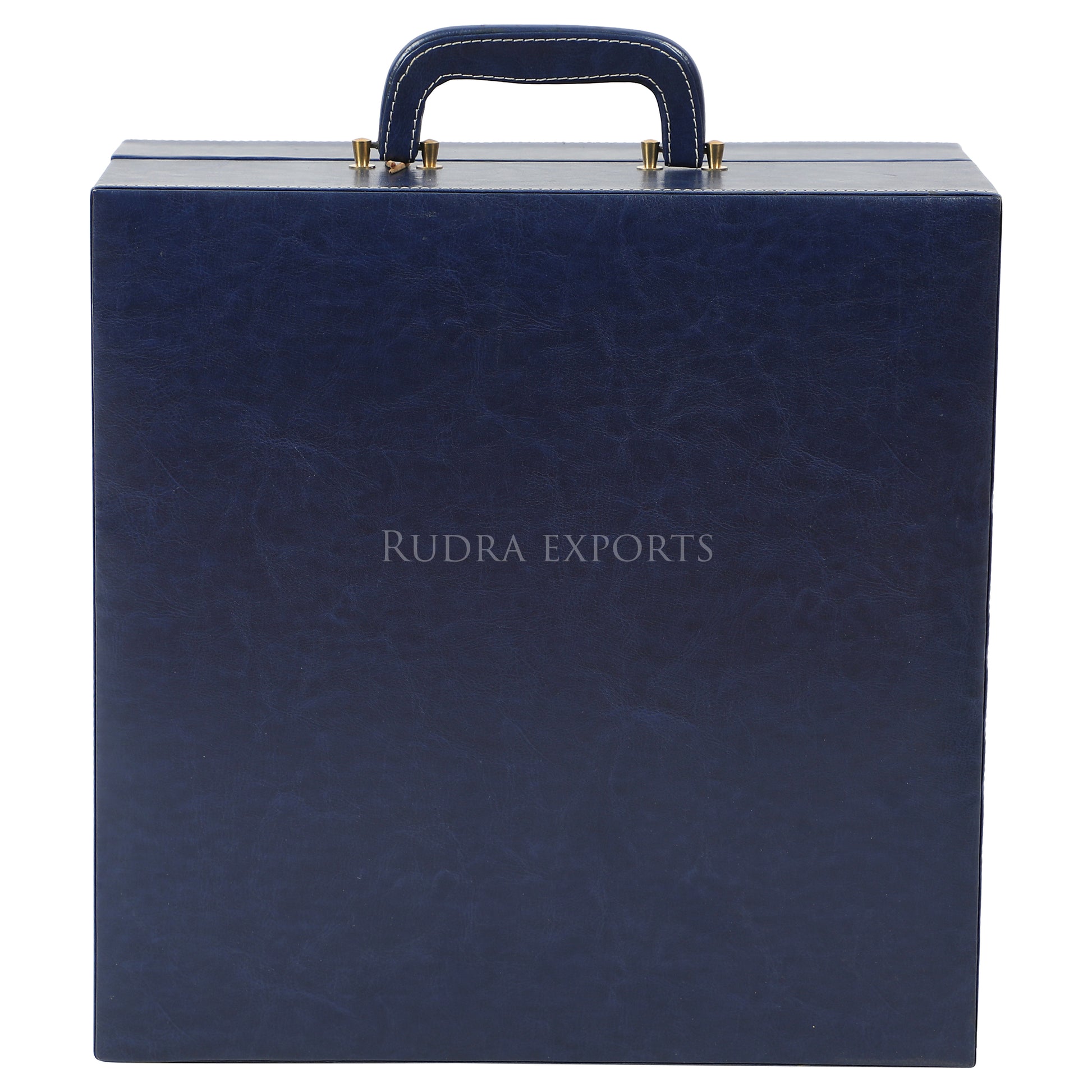 Rudra Exports Bar Set | Portable Leatherette Bar Set | Wine Case | Whisky Case | Wooden Bar Set for Picnic | Holds 01 Bottle & 04 Whisky Glasses (Blue)