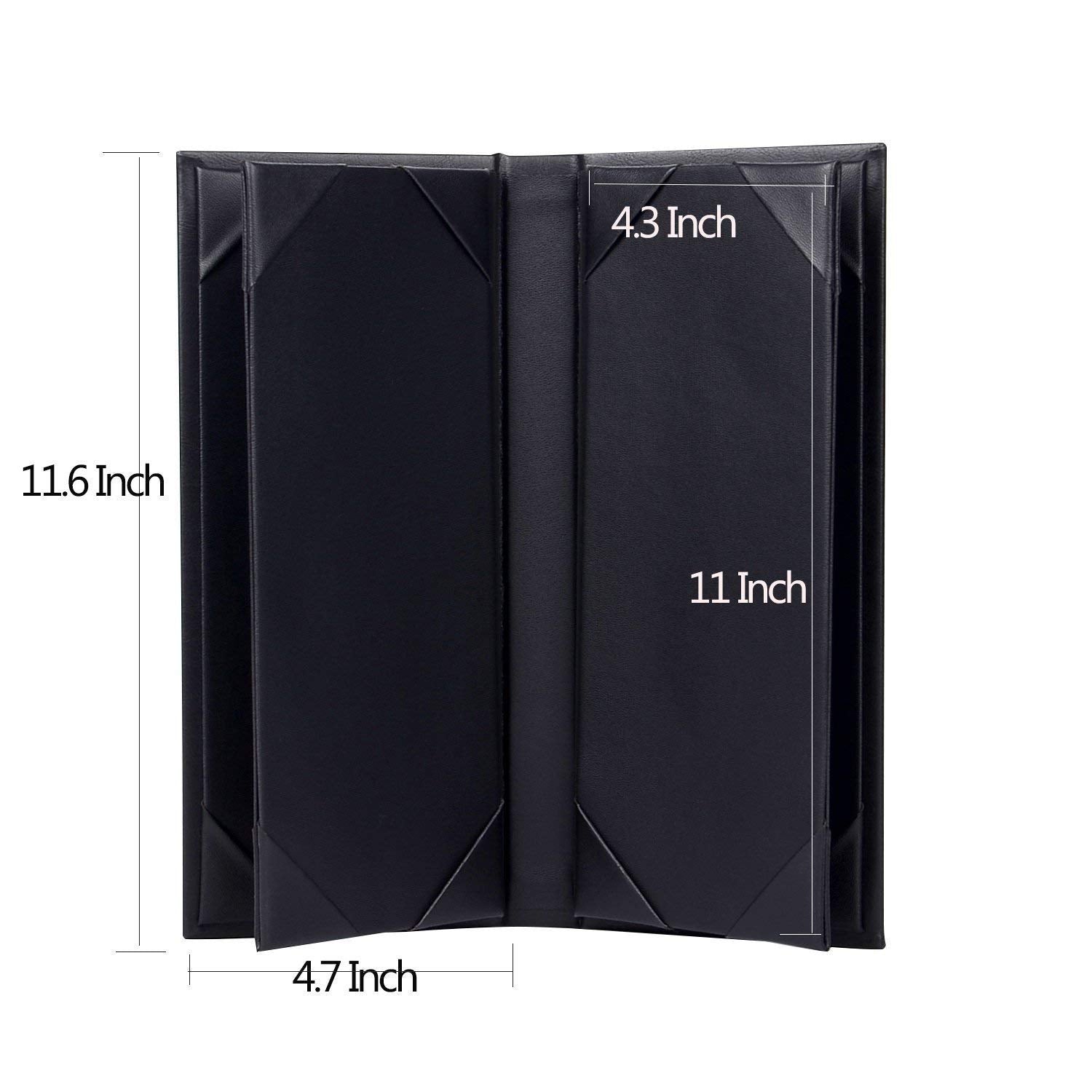 - PERFECT SIZE: External dimensions of this menu cover is :11.6" x 5.25"inch/ fit paper size:11×4.3inch, menu holder can change the menu at any time