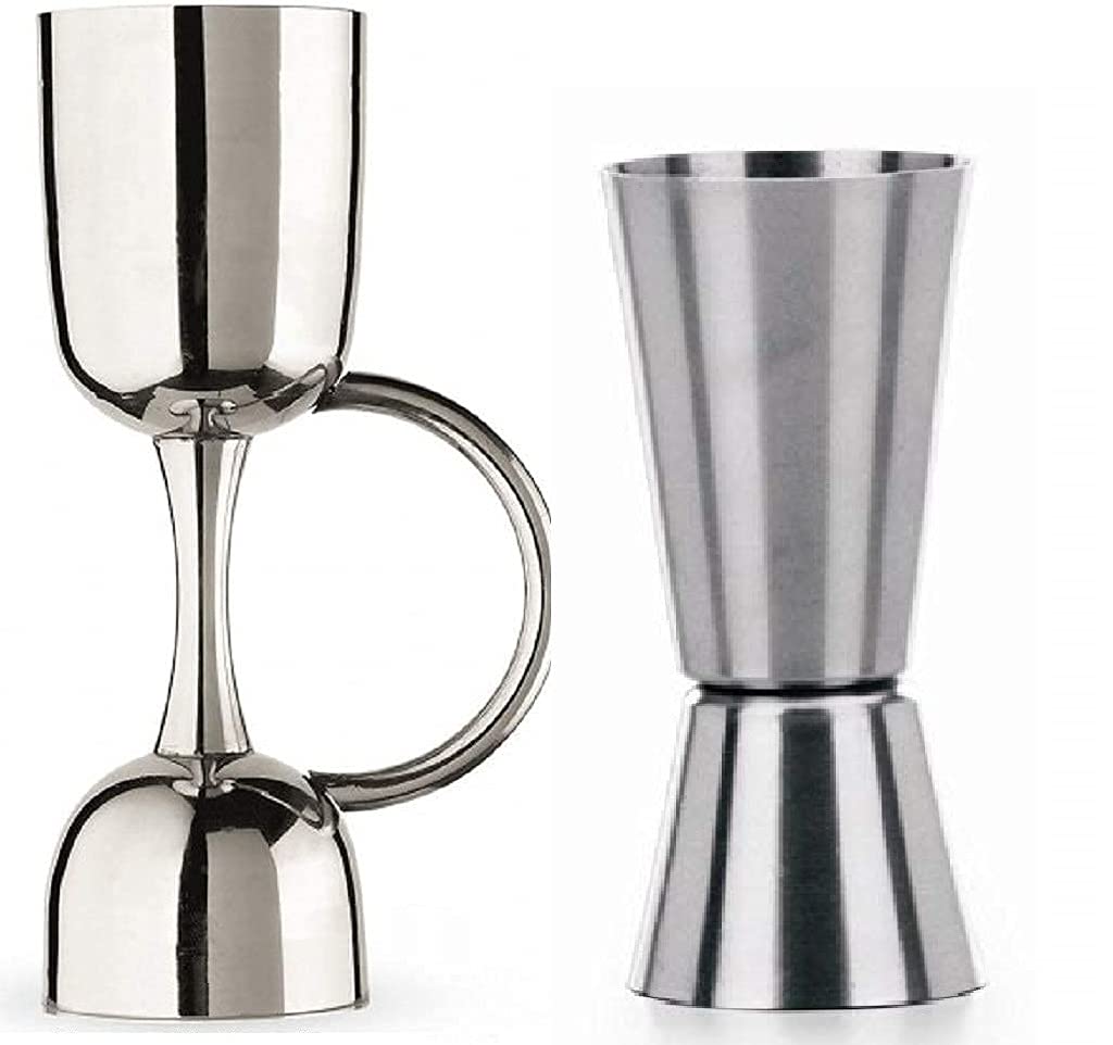 Rudra Exports Premium Peg Measurer Jigger 30 and 60 ml with Handle and Steel Peg Measure Set of 2